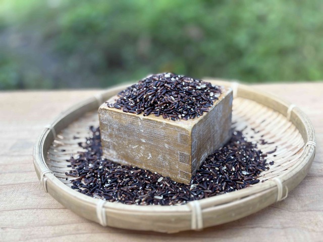 ⚫︎内容量 80g ⚫︎特徴 米粒が縦に細長いタイプの長粒米の黒米。 農薬等はもちろんの事、堆肥も与えないで自然栽培で育て、天日干しで乾燥させた力強い古代米です。 黒米の黒色には、アントシアニン(ポリフェノールの一種)が豊富に含まれています。アントシアニンには、体内の活性酸素を取り除くはたらきがあり老化対策に役立つようです。 白米に混ぜて炊くと、うっすら紫色になり食欲をそそります。 野菜と炒めてコトコト煮込んで、スープにしてもよいです。 ⚫︎栽培歴 4月に種を撒き、苗を育て、 5月に田植え、 6月、7月、8月は草取り、 9月に稲を刈り、竹で作ったハザに掛けて天日干して、 10月に脱穀、籾摺りをして、黒米が出来上がります。