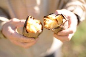 収穫してから1ヶ月程貯蔵すると甘みが増します。紅はるかは「蜜芋」タイプで、糖度が高く、加熱するとしっとりとした食感で、焼き芋にすると糖度50〜60度にもなるそうです。