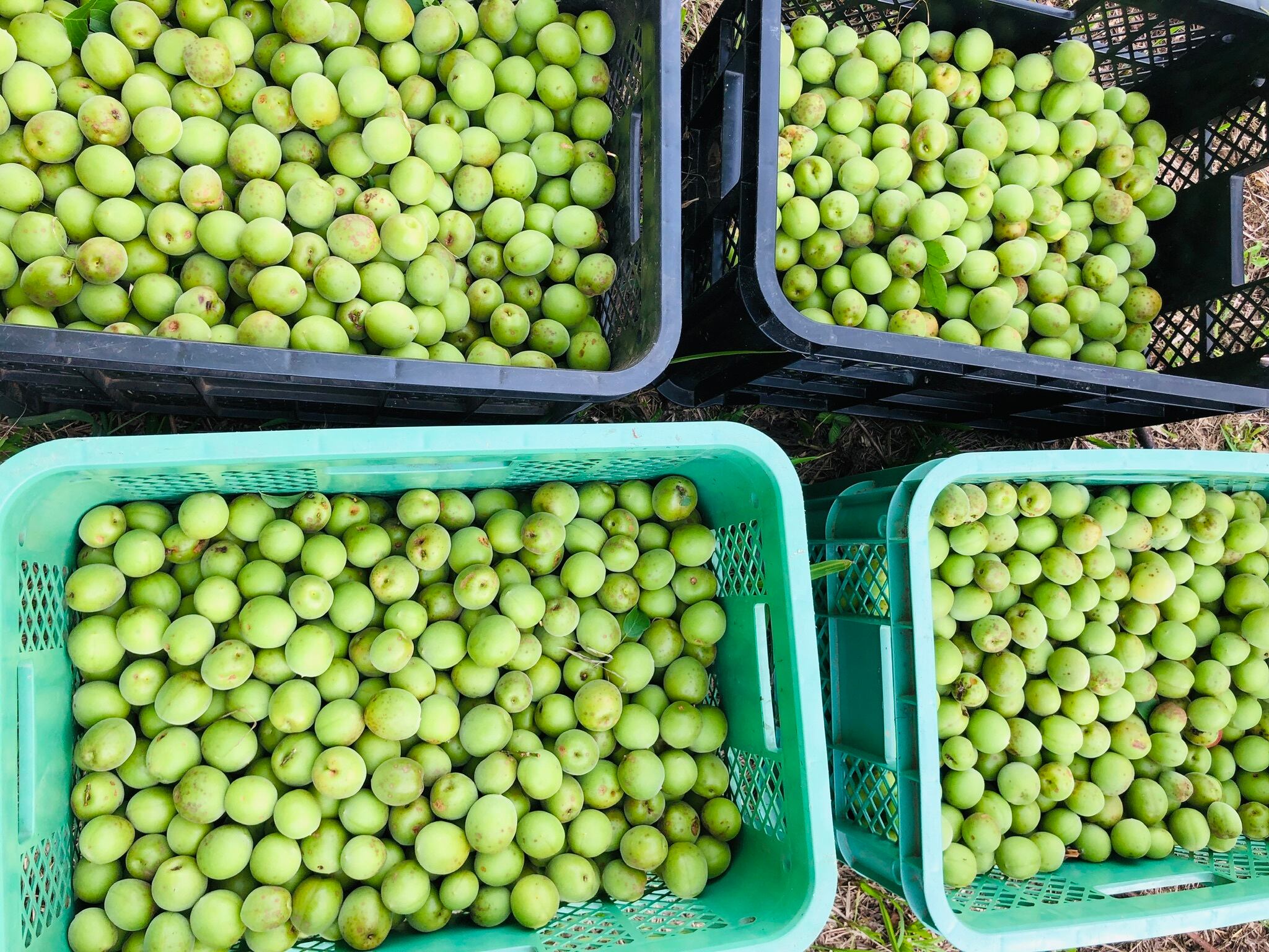 生長を確認しながら、ひとつひとつ手で摘んだ青梅で、サイズ感も色々ある無選別です。