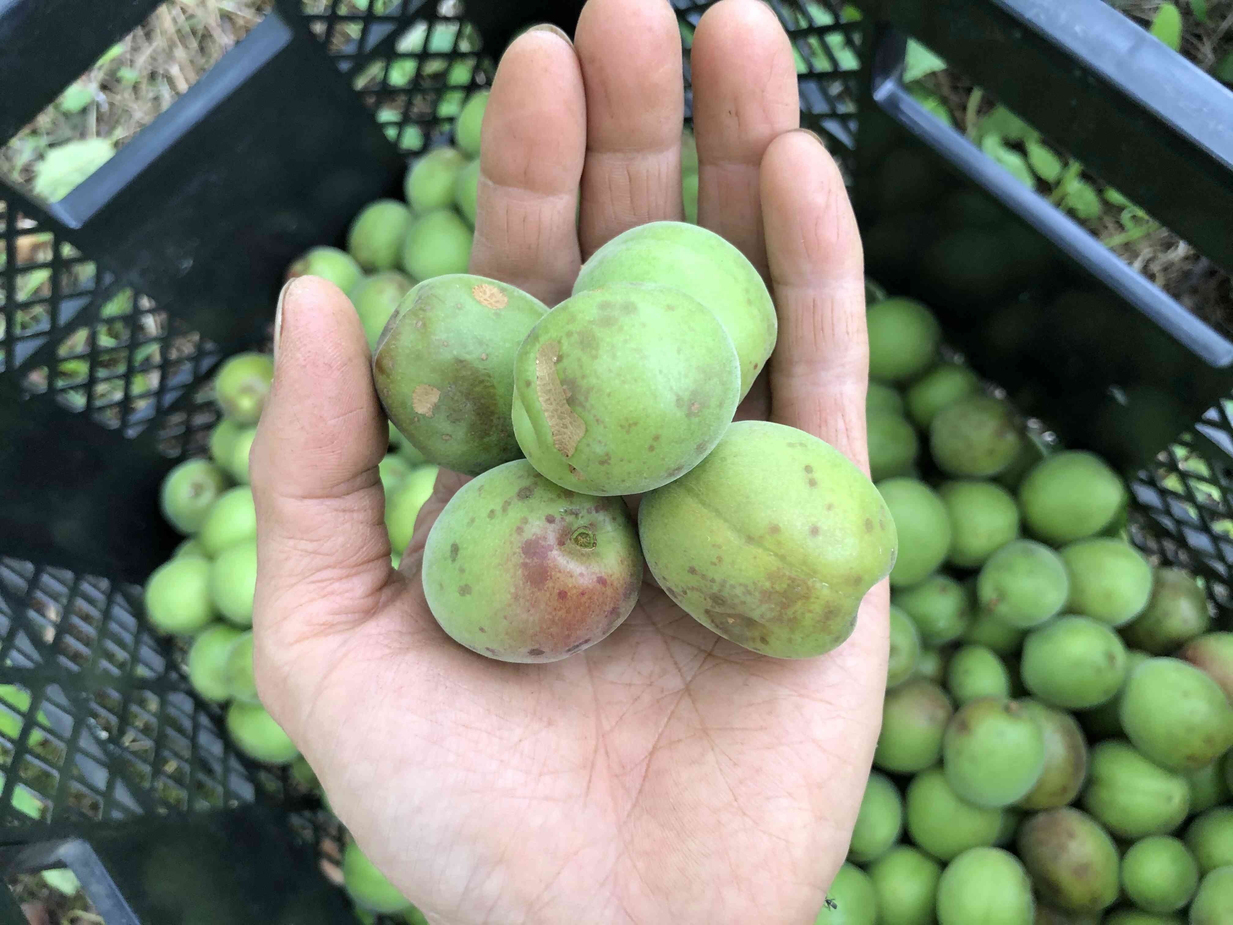 生長を確認しながら、ひとつひとつ手で摘んだ青梅で、サイズ感も色々ある無選別です。